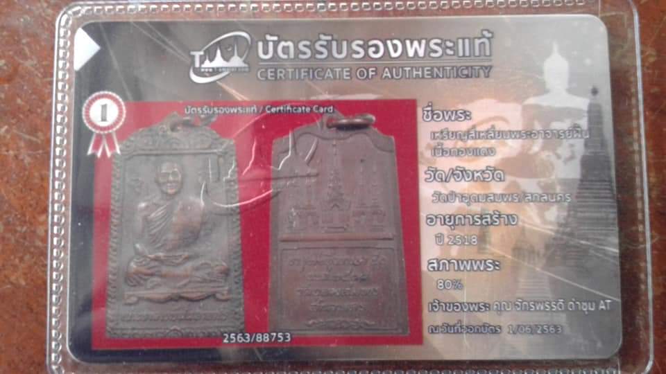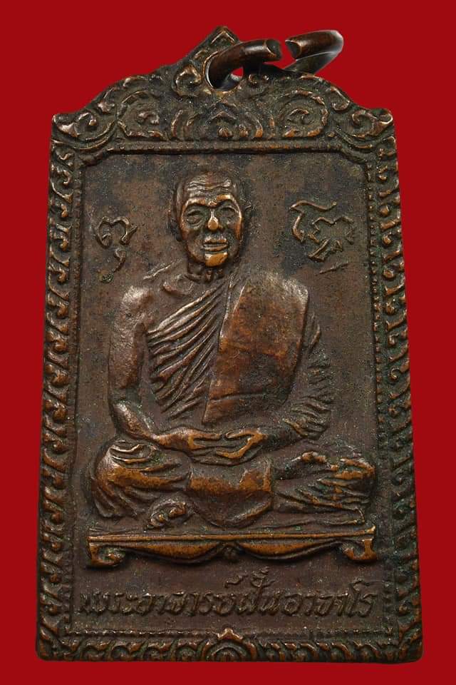 เหรียญสี่เหลี่ยม อาจารย์ฝั้น เนื้อทองแดง ปี 2518 |