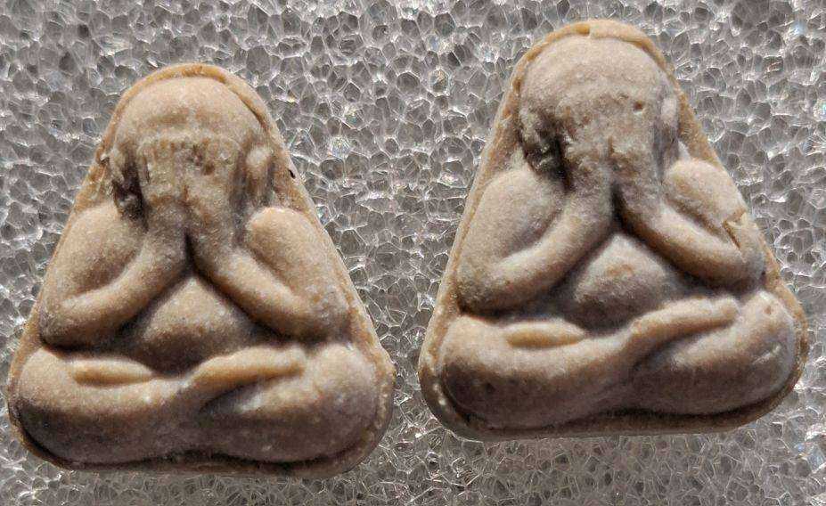 แบบไม่มียันต์จะเป็นพระชุดแรกๆเนื้อจะแก่ผงมากกว่ามีจำนวนน้อยและหายากมากครับ