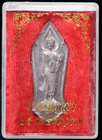 วัดใจ 80 .-/ พระลีลา 25 พุทธศตวรรษ เนื้อชินตะกั่ว + กล่อง