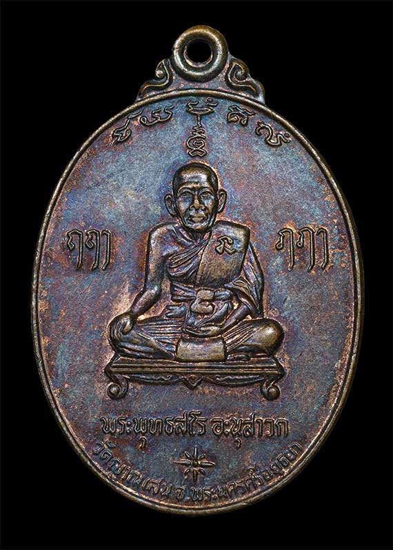 ลักษณะเหรียญเป็นเหรียญรูปไข่ขนาดมาตรฐานด้านหน้าหลวงปู่นั่งเต็มองค์บนโต๊ะฐานสิงห์ระบุชื่อท่าน "พระพุทธสโร อนุสาวก"ด้านหลังพระรัตนจักรชัยสิทธิ์