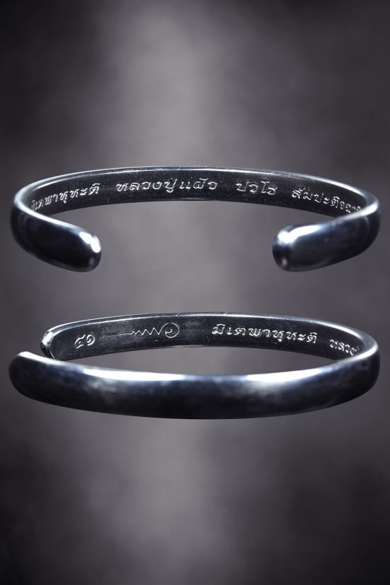 กำไลสแตนเลสขัดมัน รุ่นเจริญ ๙ หลวงปู่แผ้ว ปวโร วัดรางหมัน ออกปี 2551 |