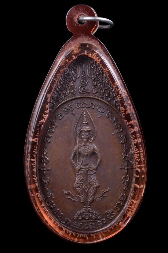 เหรียญพระสยามเทวาธิราช วัดป่ามะไฟ พิมพ์ใหญ่ บล็อคนิยม ขาขีด เลี่ยมพลาสติก