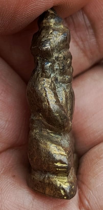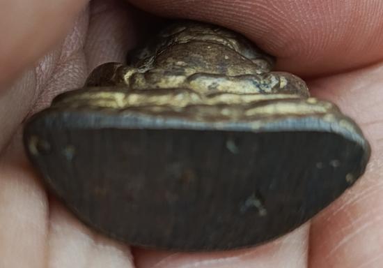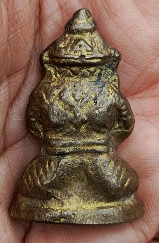 ราหูอมจันทร์ เนื้อโลหะ มีกะหลั่ยทองเก่าตามซอก ค่อนข้างมีน้ำหนัก กว้างขนาด2.5ซม. สูง4ซม.ไม่ทราบที่ |