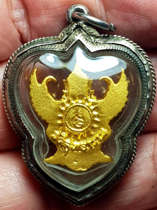 ครุฑรุ่นกำลังแผ่นดิน ปลุกเสกวัดพระแก้ว เลี่ยมกรอบเงินแท้