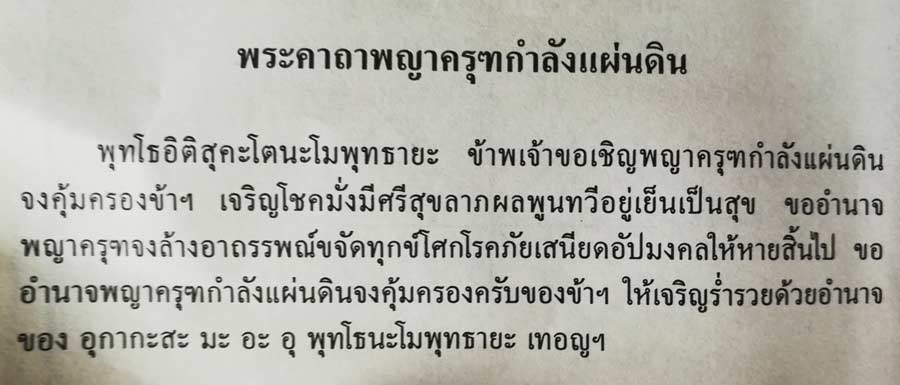 รูปหล่อพญาครุฑ กำลังแผ่นดิน รุ่นแรก วัดสุทธาราม กรุงเทพมหานคร ปี 2540 พิธีมหาพุทธาภิเษกใหญ่ ณ วัดพระศรีรัตนศาสดาราม (วัดพระแก้ว) กรุงเทพมหานคร