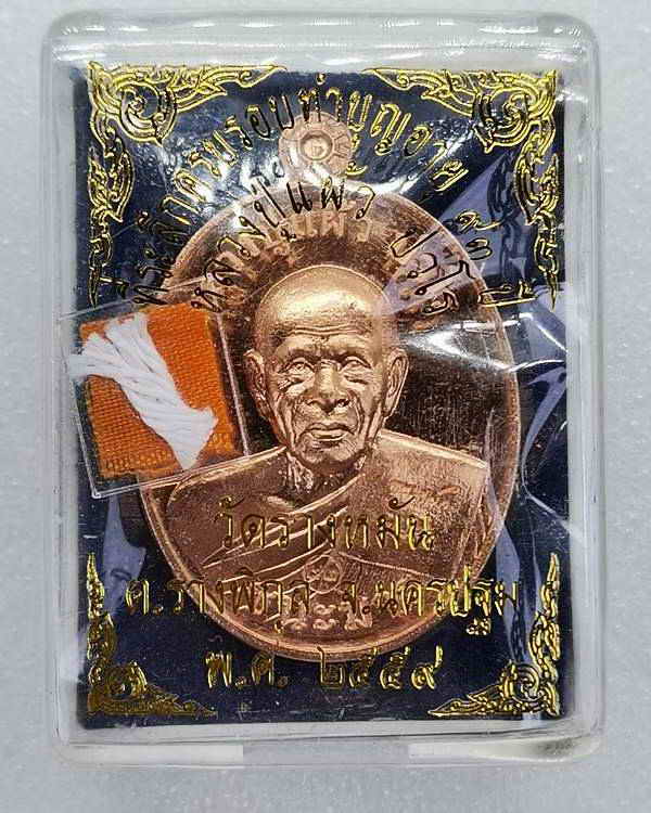 หลวงปู่แผ้ว ปวโร .. เหรียญชนะมาร วัดรางหมัน ปี 59 พร้อมกล่อง + จีวร,สายสิญจน์