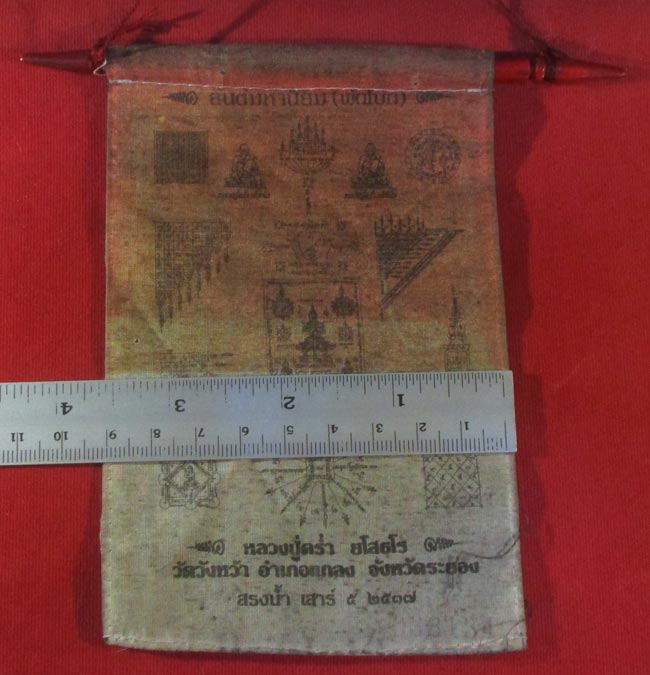 ผ้ายันต์ ผ้ายันต์พัดโบกเล็ก หลวงปู่คร่ำ วัดวังหว้า จ.ระยอง สรงน้ำ เสาร์ห้า ปี ๒๕๓๗ ครับ (พระบ้าน ครับ) |
