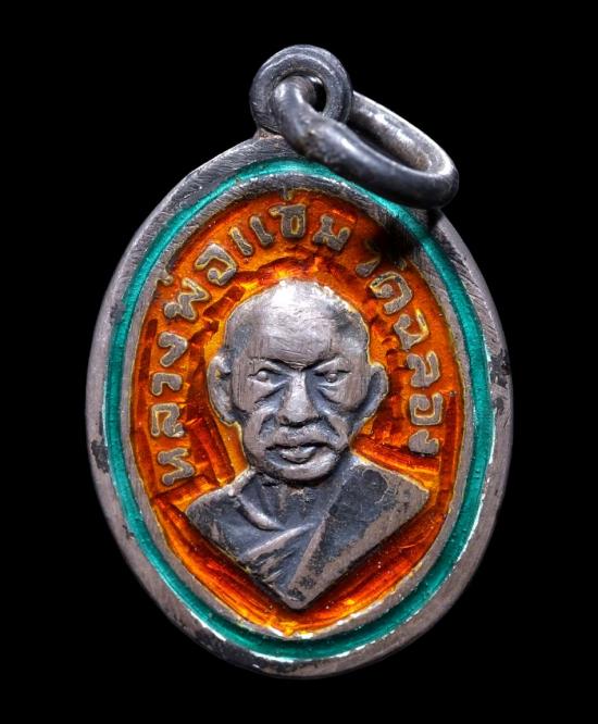 เหรียญเม็ดแตงเนื้อเงินลงยา หลวงพ่อแช่ม วัดฉลอง ภูเก็ต ปี2512 แดงเคาะแรก