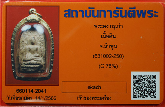 พระคง ลำพูน กรุเก่า เลี่ยมกรอบทอง พร้อมบัตรรับรองครับ