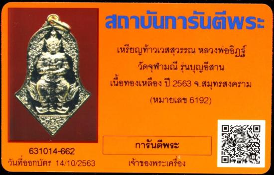 วัดใจ เคาะเดียว เหรียญท้าวเวสสุวรรณ หลวงพ่ออิฏฐ์ วัดจุฬามณี พิมพ์จำปีใหญ่ รุ่นบุญอีสาน เนื้อทองเหลือง ปี 2563 จ.สมุทรสงคราม กล่องเดิม พร้อมบัตรรับรองการันตีพระ |
