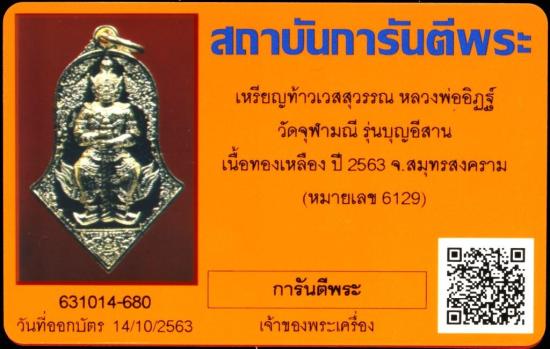 วัดใจ เคาะเดียว เหรียญท้าวเวสสุวรรณ หลวงพ่ออิฏฐ์ วัดจุฬามณี พิมพ์จำปีใหญ่ รุ่นบุญอีสาน เนื้อทองเหลือง ปี 2563 จ.สมุทรสงคราม กล่องเดิม พร้อมบัตรรับรองการันตีพระ |