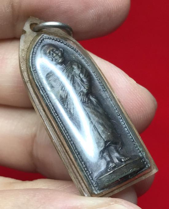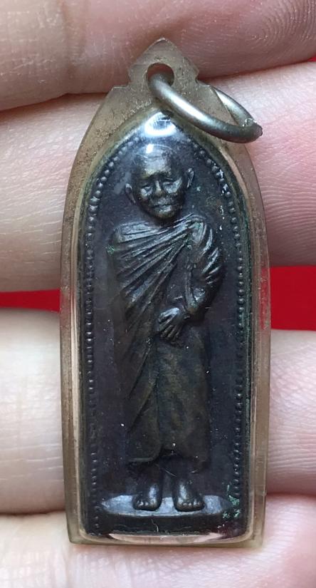 แดงเคาะแรก...เหรียญรูปเหมือนยืน หลังรางปืน หรือ เหรียญรุ่น 4 " หลวงปู่แหวน วัดดอยแม่ปั๊ง " ปี 2517 เนื้อทองแดงรมดำ สวยๆ อยู่ในกรอบเก่าเดิมครับ (รับประกันแท้ตลอดชีพ)