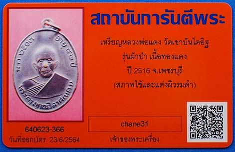 เหรียญหลวงพ่อแดง วัดเขาบันไดอิฐ รุ่นผ้าป่า เนื้อทองแดง ปี 2516 จ.เพชรบุรี พร้อมบัตรรับรองสถาบันการันตีพระ รับประกันตามกฎ G พระ ทุกประการครับ |
