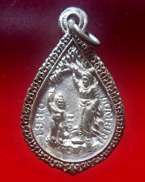เหรียญลุมพินี เนื้อเงิน (LUMBINI) เป็นเหรียญหล่อพระพุทธเจ้าปางตรัสรู้ หลังปางประสูติ ประเทศอินเดีย ค.ศ.1980 |