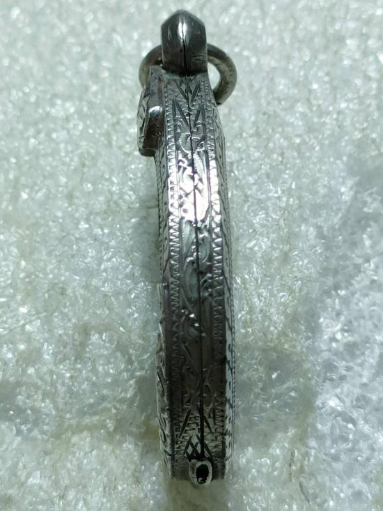 "เคาะเดียว"ตลับเงินมือ2 ขนาดสูง3.8ซม. ขนาดกว้าง2.2ซม.รูปไข่ |