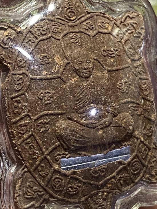 พญาเต่าเรือน รุ่นโภคทรัพย์ รุ่นแรก หลวงพ่อหวั่น วัดคลองคูณ เนื้อว่าน ฝังตะกรุดเงิน เป็นเต่า รุ่นแรกที่หลวงพ่อสร้าง มีเส้นเกศาจีวรของหลวงพ่อ น่าใช้มากๆ เลี่ยมเก็บสภาพผิวไว้อย่างดี รับประกันพระแท้ตามกฎ |