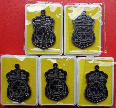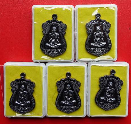 เนื้อทองแดงรมดำ ตอกโค๊ดและหมายเลข จำนวน 5 เหรียญ มีกล่องเดิม |