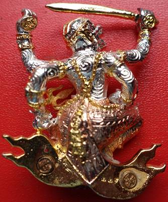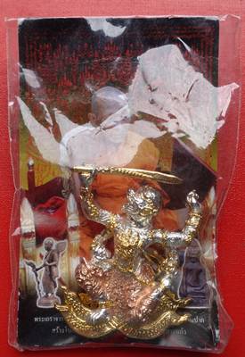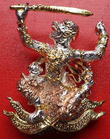 หนุมานสี่กรเหิรฟ้า หลวงปู่กาหลง เนื้อนวโลหะชุบสามกษัตริย์ ปี 2552 สภาพสวย