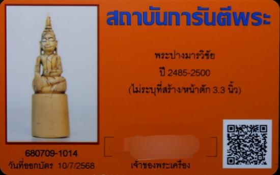 พระพุทธปางมารวิชัย (ยอดธง) ขนาดหน้าตัก ประมาณ 3.3นิ้ว สูง 4.6นิ้ว เส้นผ่าศูนย์กลาง 1.5นิ้ว