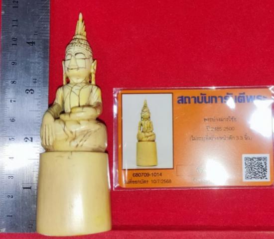 พระพุทธปางมารวิชัย (พิมพ์พระยอดธง) งาแกะ ชิ้นใหญ่ สวยๆ เก่าเดิมๆ ปี2485 ตัวจริง! + บัตรรับรอง G-PRA