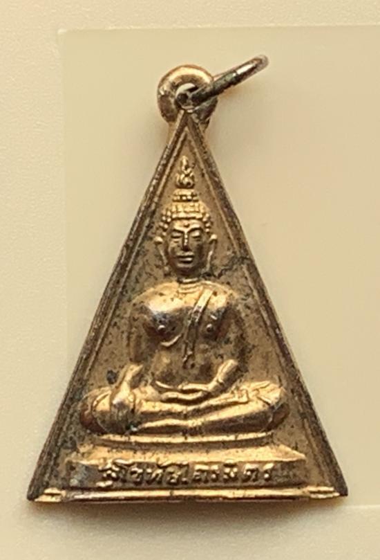 เหรียญหลวงพ่อสุโขทัยไตรมิตร (หลวงพ่อทองคำ) รุ่นแรก วัดไตรมิตรฯ เขตสัมพันธวงค์ กทม. หลวงพ่อทองคำพระพุทธรูปปางมารวิชัย รุ่นแรก จัดสร้างในโอกาสสมโภชน์องค์พระพุทธสุโขทัยไตรมิตร ในวันที่ 25 ก.พ. 2499 เหรียญรูปสามเหลี่ยม ปลุกเสกโดยคณาจารย์จำนวนมากในยุคนั้น อาทิ หลวงพ่อจง วัดหน้าต่างนอก