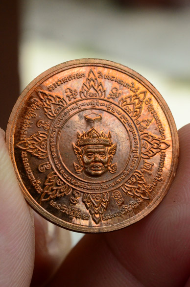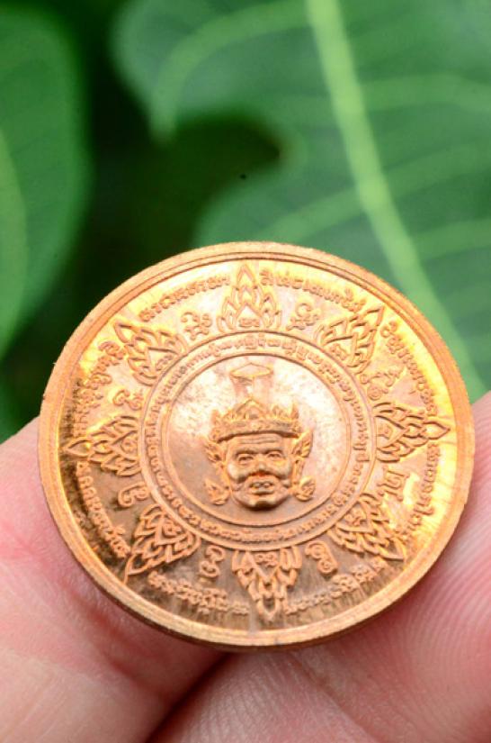 ด้านหลังเป็น เศียร ปู่ฤษี ที่เรียกว่า พ่อแก่ เป็นครูของศิลปกรรม การแสดง ฟ้อนรำ ขับร้อง และ ดนตรี ล้อม ด้วย พระคาถานารายณ์ สิบปาง เหรียญนี้ อัญเชิญ มหาเทพ พร้อมเหล่า เทพพาหนะ กล่าวคือ พระศิวะ ทรงโคนนทิ พระนารายณ์ ทรงครุฑ พระพรหม ทรงหงส์