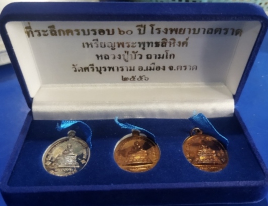 เหรียญพระพุทธสิหิงค์ หลวงปู่บัว ถามโก วัดศรีบุรพาราม จ.ตราด เนื้อเงิน,นวะ,ทองแดง หมายเลข 255 พร้อมกล่อง สวยๆ+++สร้าง500ชุด ราคาจอง1,599บาท ที่ระลึกครบ 60 ปี โรงพยาบาลตราด ปี56 |