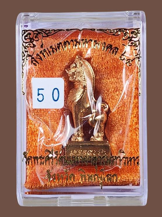 สิงห์เมตตามหามงคล เนื้อทองแดง( ทองชมพู ) เลข 50-สุดยอดเครื่องรางของขลัง รุ่นแรก ของวัดพระศรีรัตนมหาธาตุวรมหาวิหาร พิษณุโลก วัดจัดสร้างเอง