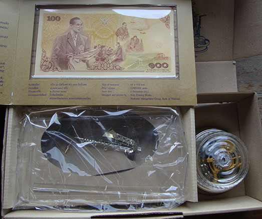 (ธนบัตร 100 บาท พร้อมปก 1 ใบ) กรอบอะคิลิก กล่องดนตรีเพลง-แซกโซโฟน และกระเป๋าผ้า ( 2 ชุด) ตามรูปสวยครับ) |