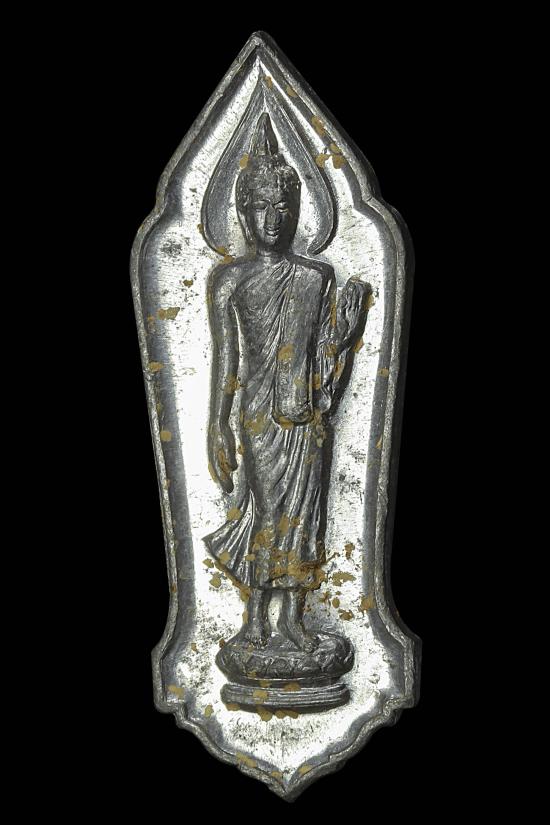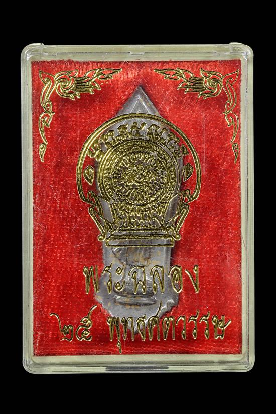 พระลีลา 25 พุทธศตวรรษ เนื้อชินตะกั่ว ปี 2500 พร้อมกล่องเดิม สภาพสวย แดง 500
