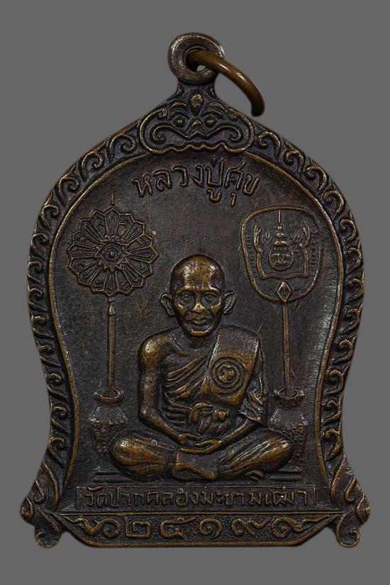 เหรียญหลวงปู่ศุข วัดคลองมะขามเฒ่า ปี 19 หลวงพ่อกวยปลุกเสก เดิมๆ แดงวัดใจ 100