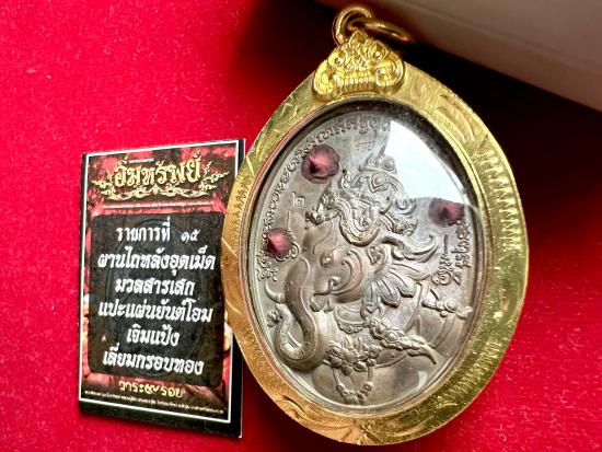 พระพิฆเนศ เนื้อผานไถ หลังอุดมวลสารเสก แปะผ้ายันต์โอมเจิมแป้ง หมายเลข 2 พร้อมกรอบ