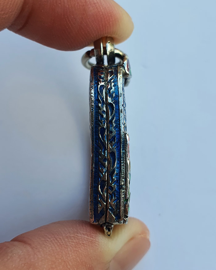 ตลับเงินลงยายกซุ้มสภาพดี ใส่รูปหล่อ พระปิดตา และพระอื่นๆที่ขนาดใกล้เคียง ขนาด 2.2x2.6 ซม. |