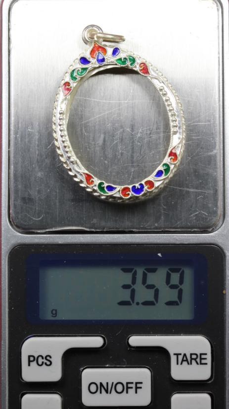 กรอบเงินรูปไข่ เงินลงยา งานสุโขทัย เงินแท้ 99 % ครับ |