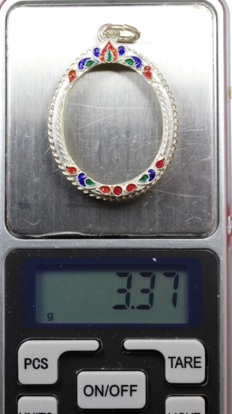กรอบเงินรูปไข่ เงินลงยา งานสุโขทัย เงินแท้ 97 % ครับ |