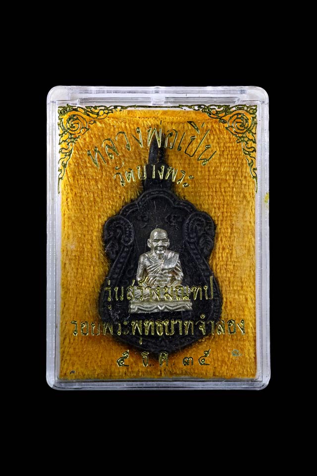 เหรียญหล่อ หลวงพ่อเปิ่น วัดบางพระ รุ่นสร้างมณฑป ปี2535 เนื้อนวะหน้ากากเงิน พร้อมกล่อง |