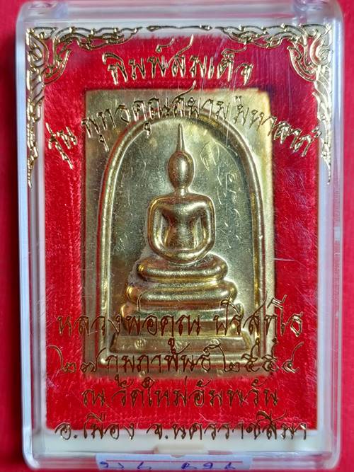 พระพิมพ์สมเด็จหลังพิมพ์รูปเหมือน หลวงพ่อคูณ รุ่น พุทธคุณสยามมหาลาภ ออกวัดใหม่อัมพวัน ปี 54 เนื้อ ทองฝาบาตร หมายเลข 626 สภาพสวย เคาะเดียวแดง |