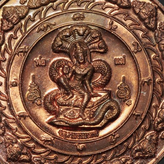 เคาะเดียว+ เหรียญคันฉ่องผ่าตะวันเหนือดวง ขนาด 3.2 ซม. วัดพุทไธศวรรย์ เนื้อทองแดง |