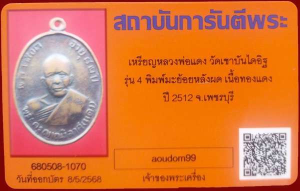 เคาะเดียวครับ...เหรียญหลวงพ่อแดง วัดเขาบันไดอิฐ รุ่น4 พิมพ์มะย้อยหลังผด ปี 2512