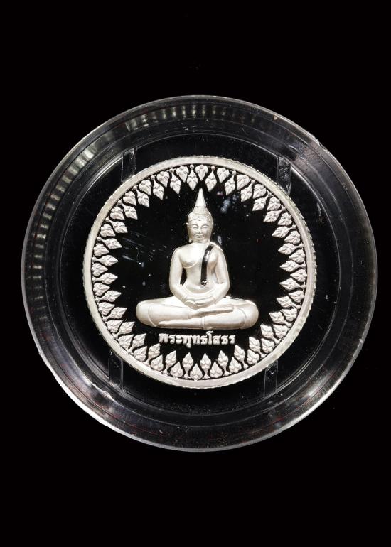 เหรียญพระพุทธโสธร หลังภปร. รุ่นสมโภชพระอุโบสถเฉลิมพระเกียรติ ปี2550 (((เนื้อเงินนอก ขัดเงาพ่นทราย))) เก่าเก็บ เดิมๆ กล่องใบครบ