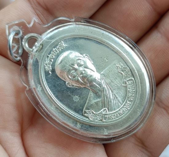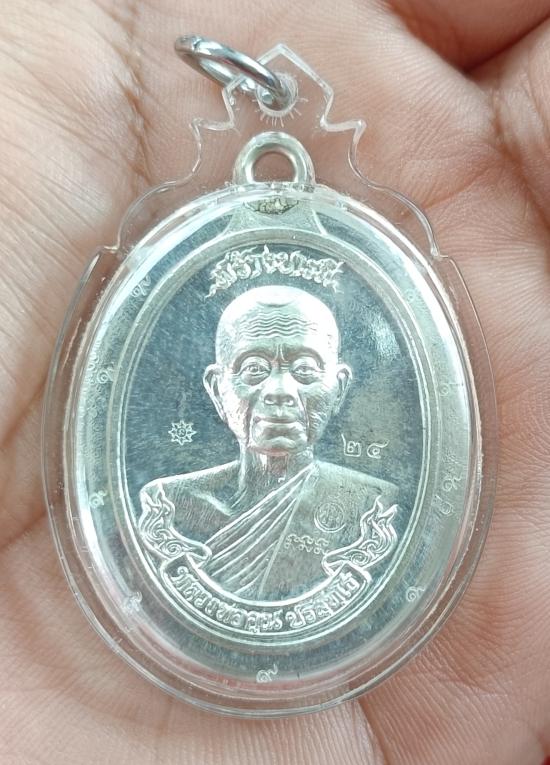 เหรียญห่วงเชื่อม หลวงพ่อคูณ รุ่นสร้างบารมี ๙๐ วัดถำ้ดาวเขาแก้ว เนื้อเงิน ไม่ตัดปีก หลังเรียบ