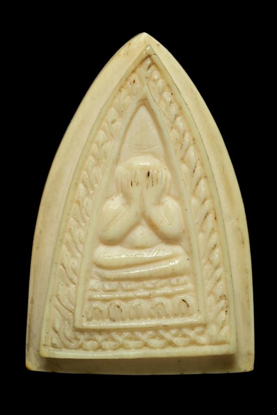 พระพุทธงาแกะมีจาร หลังพระปิดตางาแกะ ไม่ทราบที่