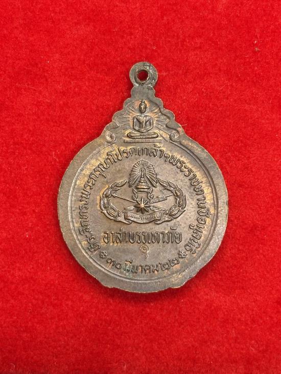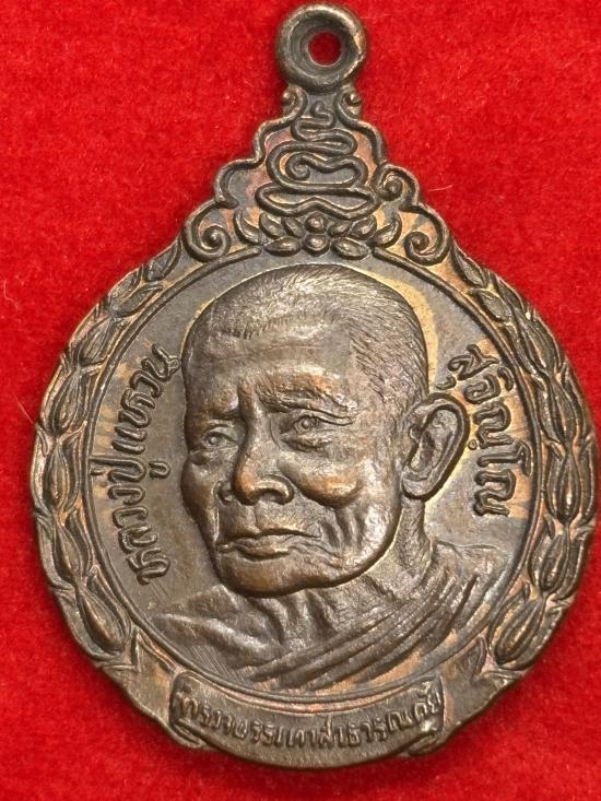 เหรียญหลวงปู่แหวน สุจิณฺโณ วัดดอยแม่ปั๋ง รุ่นตำรวจบรรเทาสาธารณภัย ปี 2522 เนื้อทองแดง ตอกโค๊ด