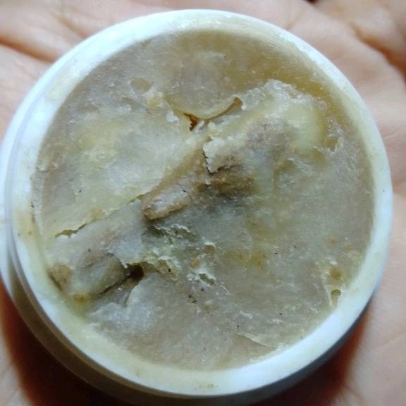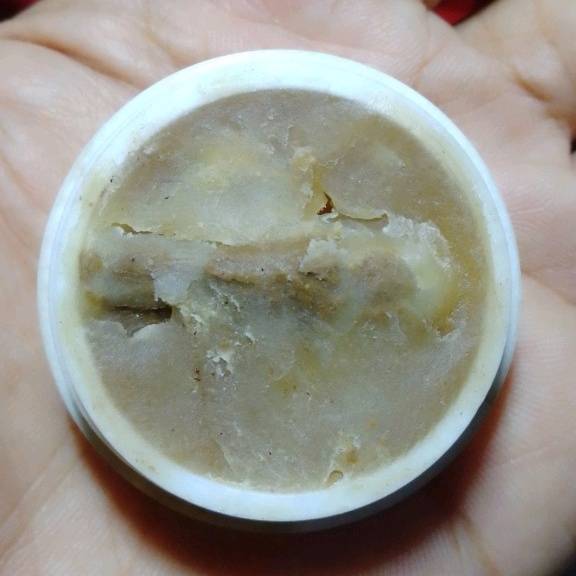 สีผึ้ง ไม่ทราบที่ มีจารยันต์หมึกฝาบน-ล่าง ในตลับสีผึ้งเต็ม มีตัวอะไรไม่ทราบเป็นเนื้อผงฝังอยู่ ครับผม |
