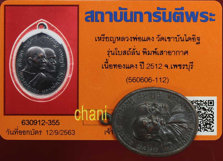 เหรียญ หลวงพ่อแดง วัดเขาบันไดอิฐ รุ่นโบสถ์ลั่น พิมพ์เสาอากาศ ตาชั้นเดียว เนื้ิอทองแดงกะไหล่ทอง ปี2512 จ.เพชรบุรี สภาพสวยๆ ดำๆ พร้อมบัตรรับรองพระแท้จากจีพระอุ่นใจได้ ไม่ต้องลุ้น ค่ะ |