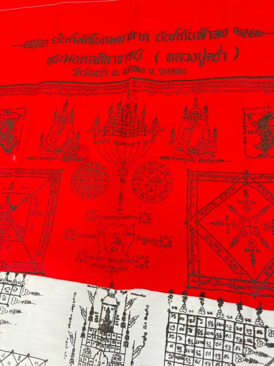 ผ้าายันต์พัดโบก วัดวังหว้า หลวงปู่คร่ำ ระยอง ขนาด กว้าง 27 นึ้ว ความยาว 41.9 นึ้ว