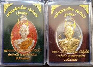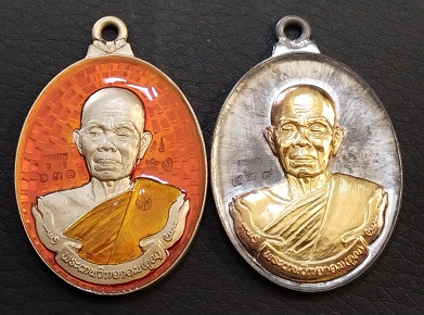 เหรียญ หลวงพ่อคูณ 2เหรียญ รุ่นห่วงเชื่อมรุ่นแรก เหรียญ กรรมการ เนื้อชินตะกั่วหน้ากากทองลำอู่ หมายเลข428 อัลปาก้าลงยาสีแสด เลข 631 ราคาวัดใจ
