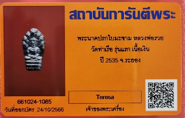ปรกใบมะขาม รุ่นแรก เนี้อเงิน หลวงพ่อรวย วัดท่าเรือ ระยอง ปี2535 พร้อมบัตรรับรอง