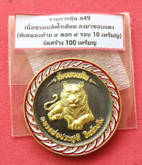 พญาเสือนอนกิน อ.ประสูตร วัดในเตา ตรัง เหรียญเนื้อชุบแบล็คโรเดี่ยม ขอบแดง รุ่นชนะจนมนต์พยัฆค์ปี๖๘ |