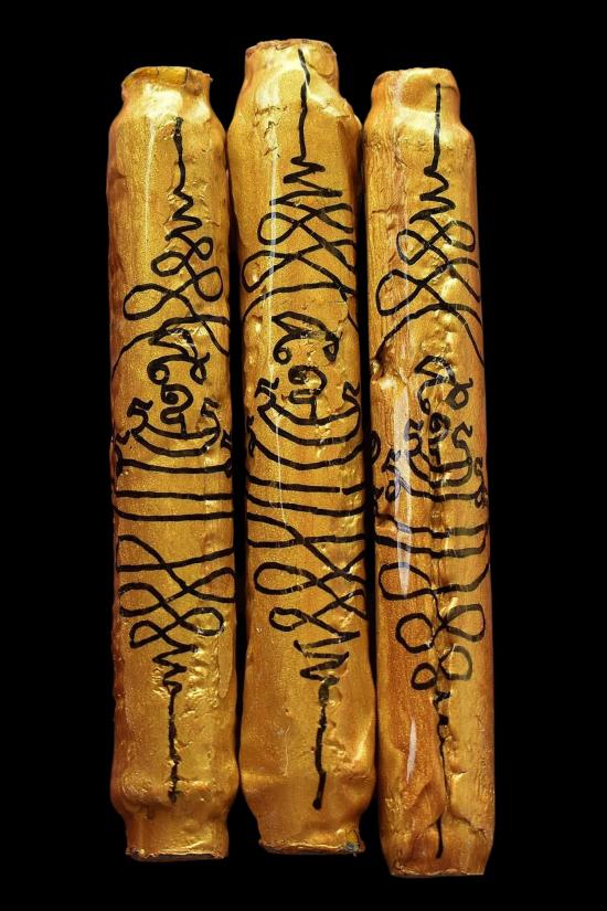 ชุด 3 ดอก...ตะกรุดเจ้าทรัพย์ (ห้ามจน) ทาทองหลวงพ่อจารยันต์ ปี 2554 หลวงพ่อผิน วัดโคกสว่าง จ.ปราจีนบุรี พร้อมซองรูปเดิมจากวัด สภาพพระตามรูปที่ลงทุกประการ (ขนาดยาว 3 นิ้ว)